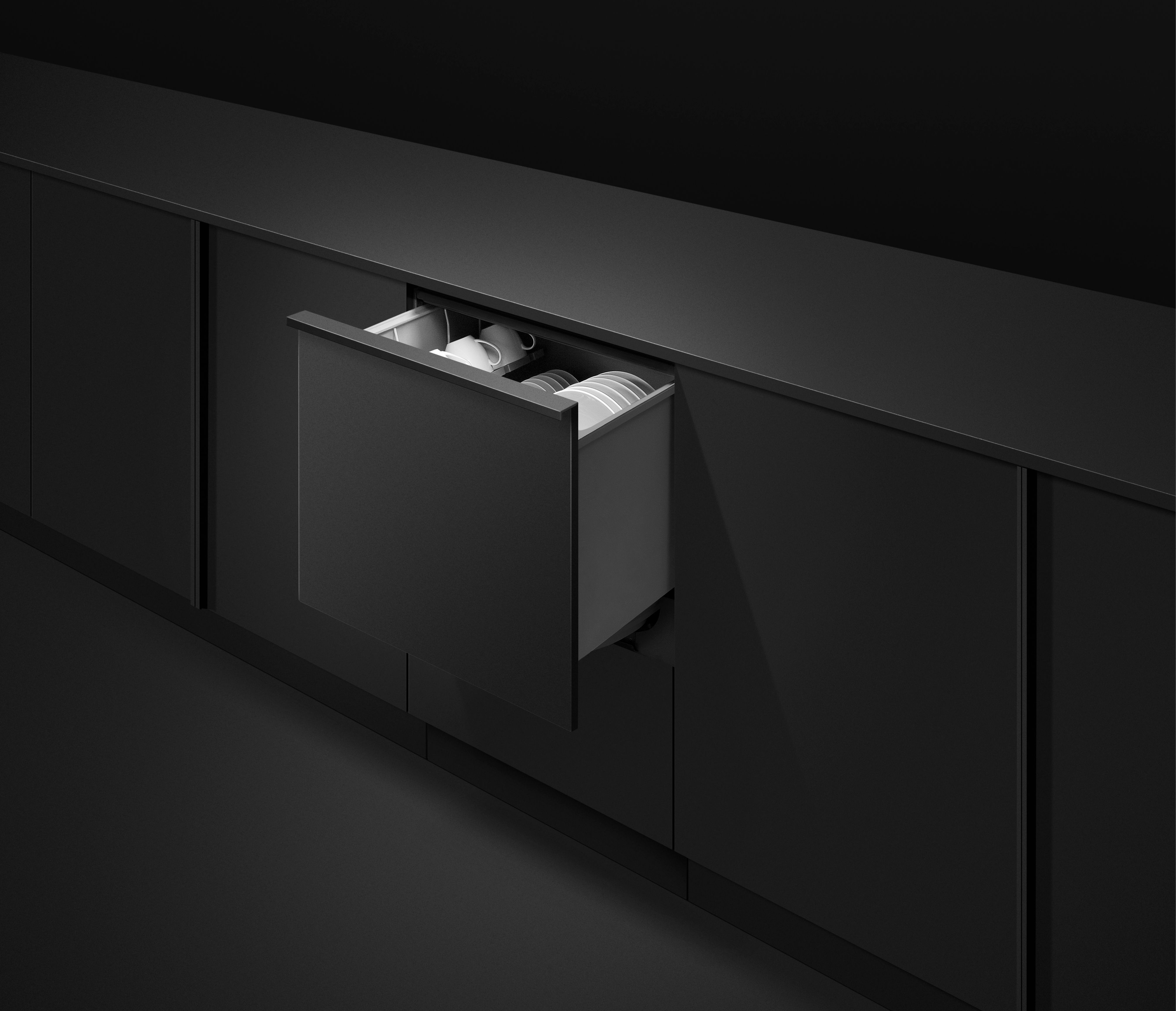 With minimal installation gaps to match your cabinetry, Integrated style DishDrawer™ Dishwashers can blend seamlessly with the kitchen materiality, or contrast with stainless steel panels and handles.