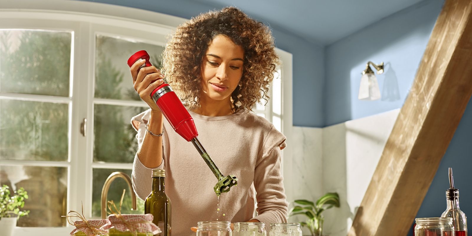 When you pick up a hand blender, the power is in your hands. You're ready to crush, blend, chop and froth all sorts of drinks and dishes. Our hand blenders (also called ‘stick blenders’ or ‘immersion blenders’) give you quiet, efficient operation and excellent control. Master new recipes and find shortcuts to old favourites. You'll be proud to display it in the kitchen, with its sleek looks, bold colour and little touches like a soft-grip handle.