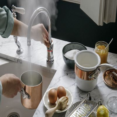 A timeless classic all-in-one tap that will look at home in every country style kitchen. Available in four finishes. When you combine it with the Quooker CUBE, you can also dispense chilled and sparkling water.