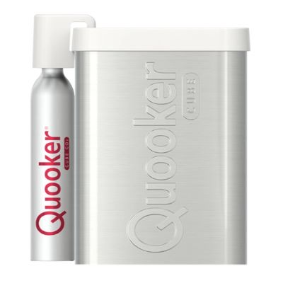 The CUBE can be installed at the bottom of the kitchen cabinet, next to the Quooker tank. It includes a filter that makes the water just as pure as the bottled water you buy in the shop. The CUBE is attached to a CO2 cylinder that gives you 60 litres of cold sparkling water from your Quooker tap.