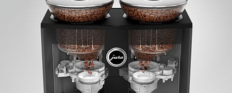 The two electronically adjustable ceramic disc grinders are precision made using an incredibly hard material so that they can grind the coffee to the optimum fineness. The Automatic Grinder Adjustment (A.G.A.) delivers phenomenal results every time over the grinder’s entire service life. There are two self-adjusting grinders so that two different coffee varieties can be used, either individually or mixed together. The mix of coffee can be selected in increments of 25 % (for instance, 100 % left, 75 % left / 25 % right, 50 % left / 50 % right, and so on) to ensure you can always select the perfect blend for your taste.