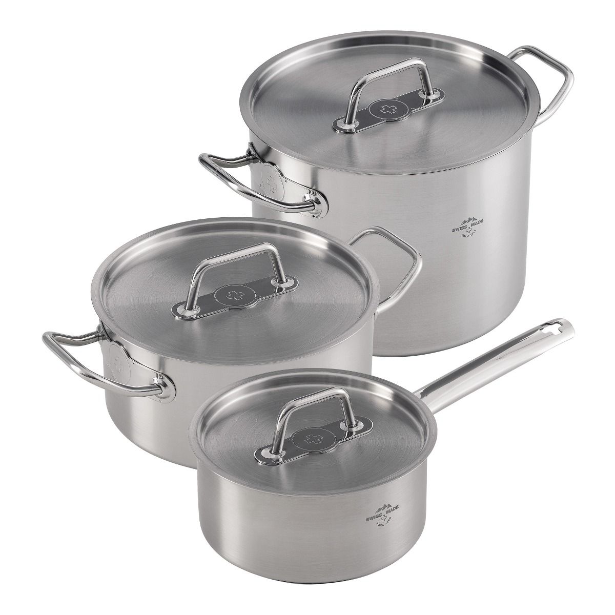 A great combination of our Swiss made professional quality cookware for professionals and home cooks. Practical, functional and durable - just what you want from cookware that will last for years. The saucepan, casserole and stockpot will cover a wide range of your cooking needs.