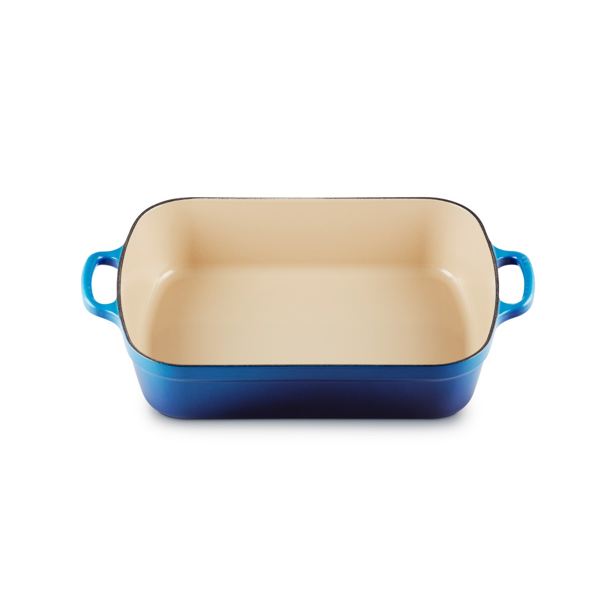 • Enamelled cast iron rectangular roasting dish with easy-grip handles