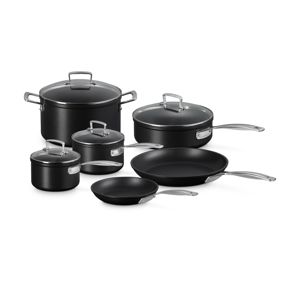 The ultimate set to cook all sorts of delicious dishes and create memorable meals, this unites six of our iconic Toughened Non-Stick pieces: a 24cm deep casserole with glass lid, two shallow frying pans in 20 and 28cm, a 24cm sauté pan with glass lid, and two saucepans with glass lids in 16cm and 18cm.