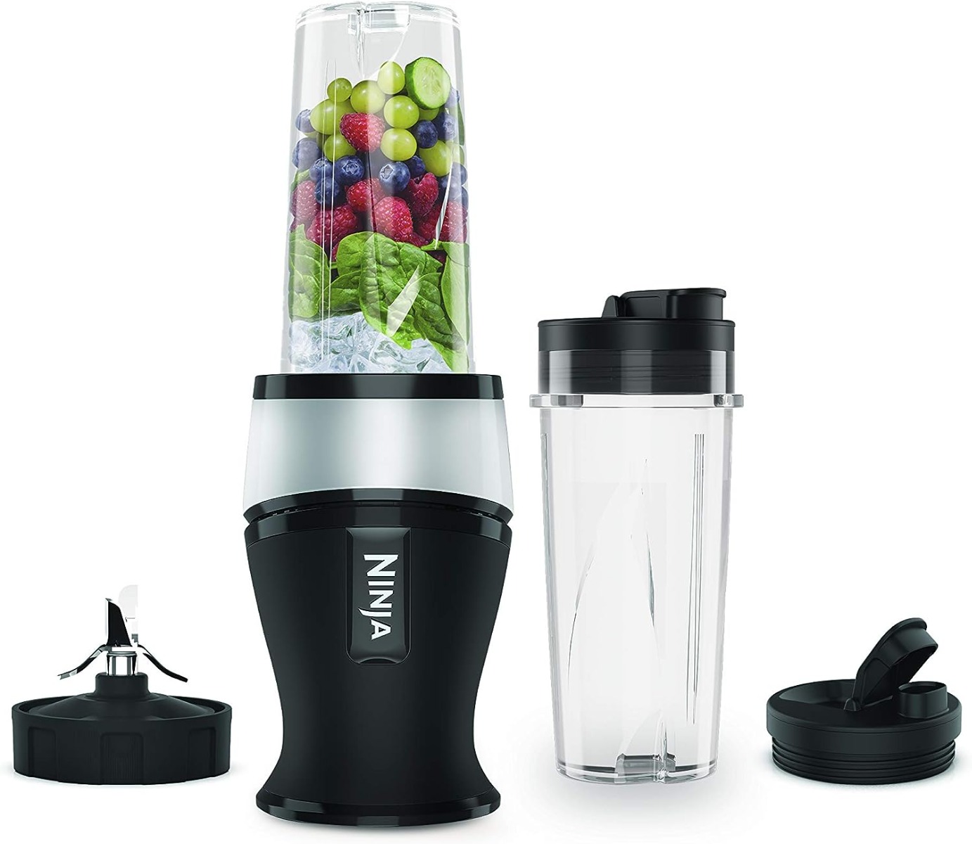 This compact Ninja Blender & Smoothie Maker combines a powerful 700-watt motor with Ninja’s precision-engineered blades, easily blending whole fruits and vegetables, nuts, seeds and even ice. Complete with two BPA-free dishwasher-safe cups and to-go lids, it’s easy to enjoy your favourite drinks on the move.