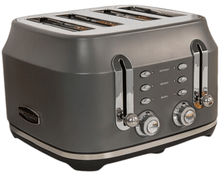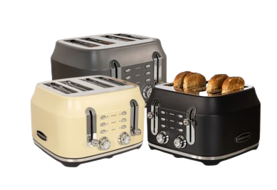 The Classic 4 slice toaster combines a traditional design with innovative features. The long slots fit bread of various thicknesses and sizes, ensuring slices are evenly toasted.