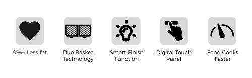 Cooks twice as much food than a standard air fryer, so you can whip up deliciously healthy meals for all the family with minimal effort